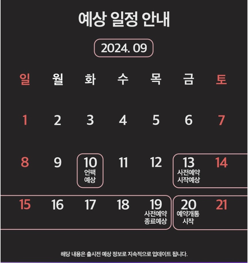 사전예약일정은 변동될 소지가 있으니, 계속 확인이 귀찮으시면 알림 신청을 해두면 됩니다.