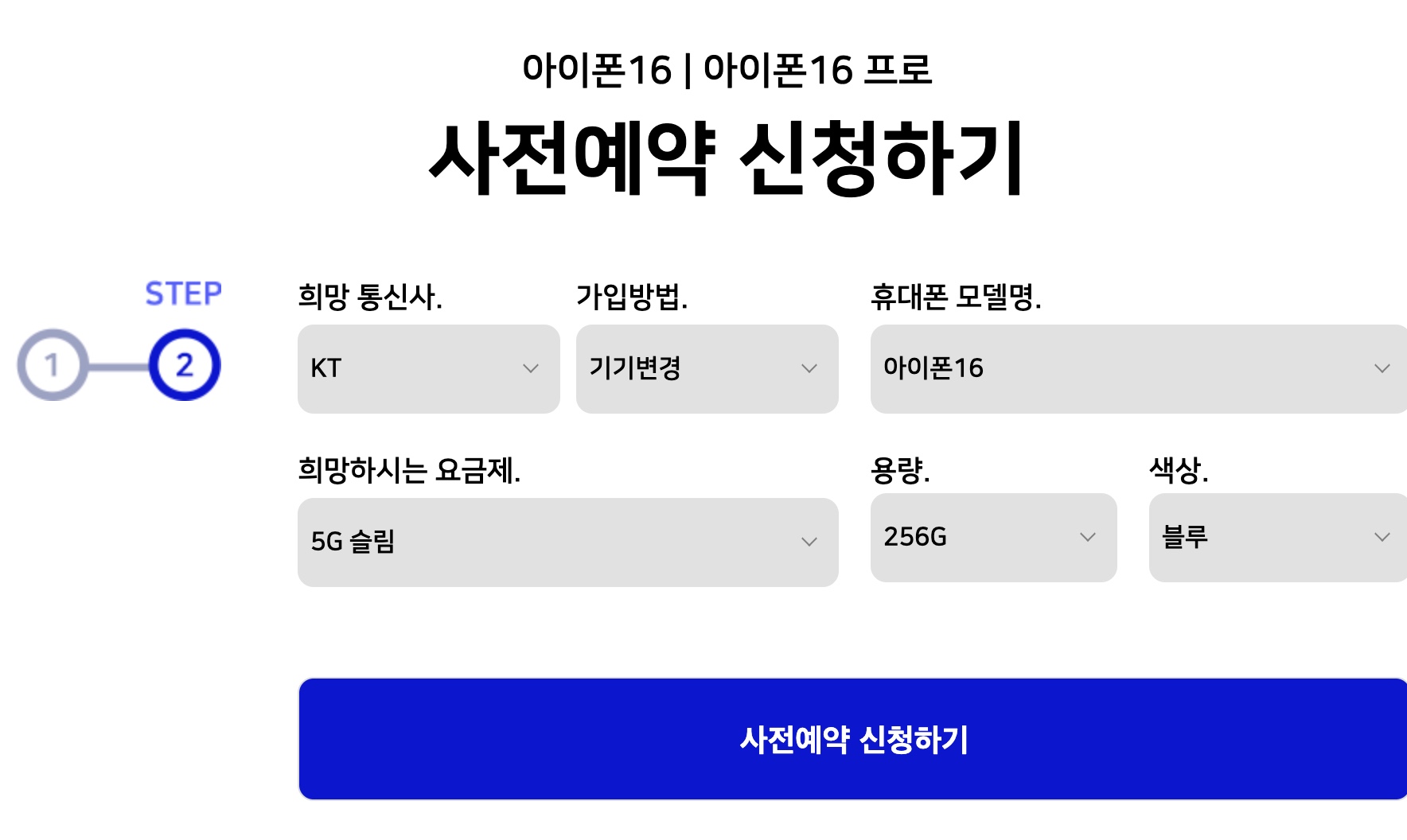 원하시는 선택을 골라 기입 후 사전예약 신청하기를 누르시면 됩니다.