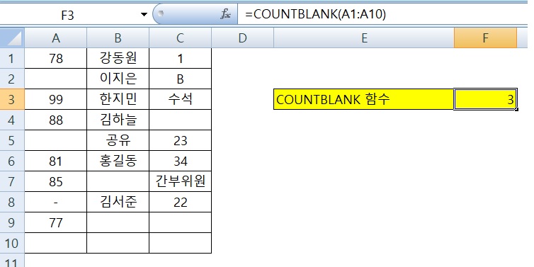 COUNTBLANK 함수는 지정된 범위 내의 빈 셀 수를 계산합니다.