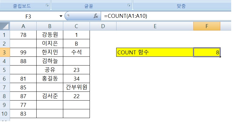 COUNT 함수의 기능을 익혀서 데이커를 보다 효과적으로 관리하고 해석하는 능력을 키워보시길 추천드립니다.